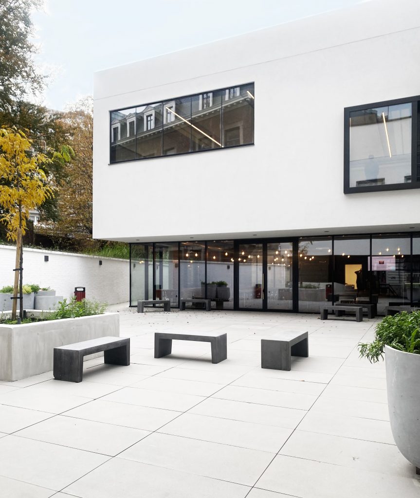 A l’intérieur de l’ancienne Banque, un travail de préservation de l’existant a été mené partout où cela était possible. Les matériaux d’origine tels le marbre arabescato, le noyer poli ou encore l’inox massif des châssis ont été préservé, parfumant la nouvelle école de l’atmosphère bancaire de l’époque.